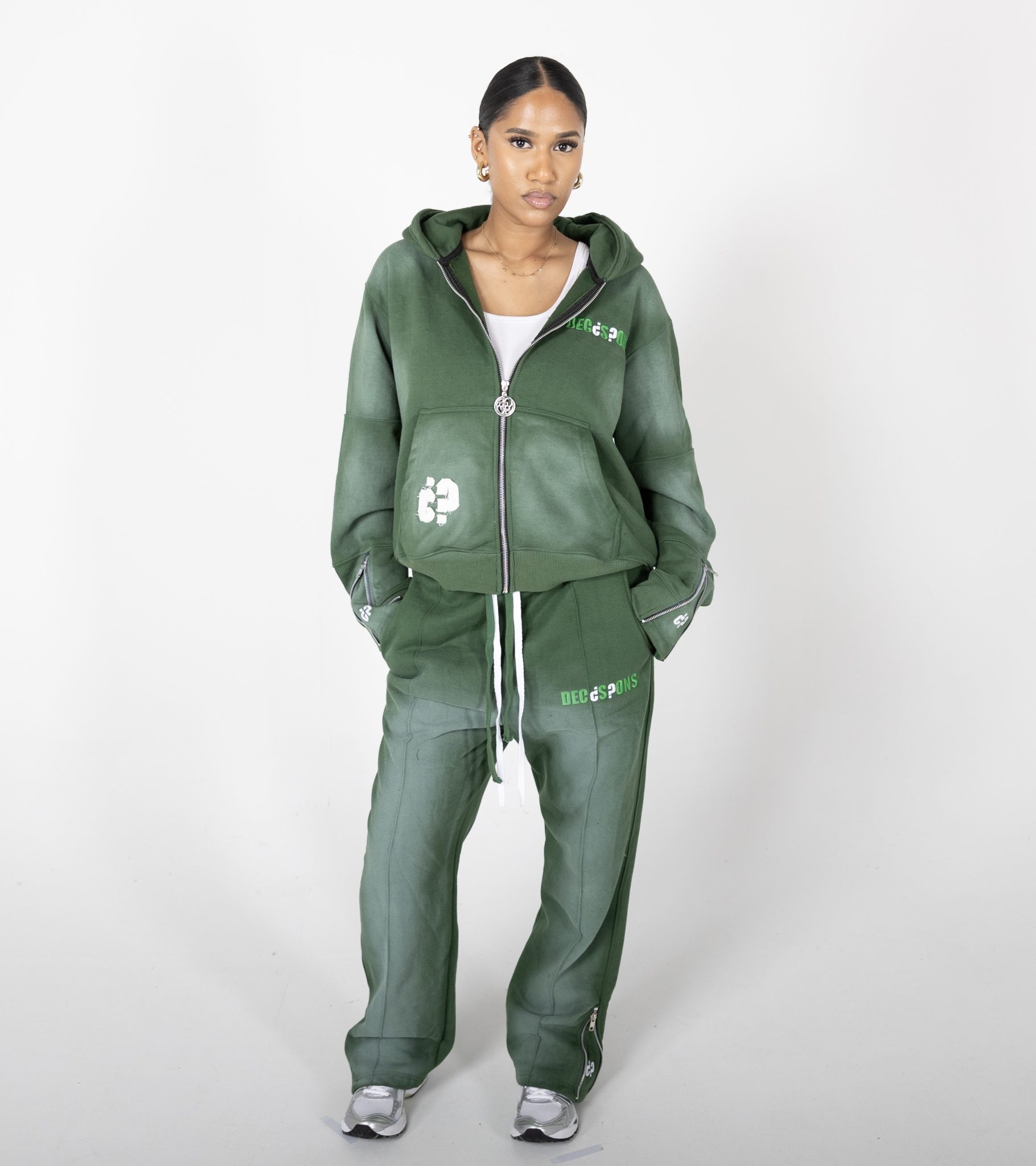 – Zip detailing on sleeves